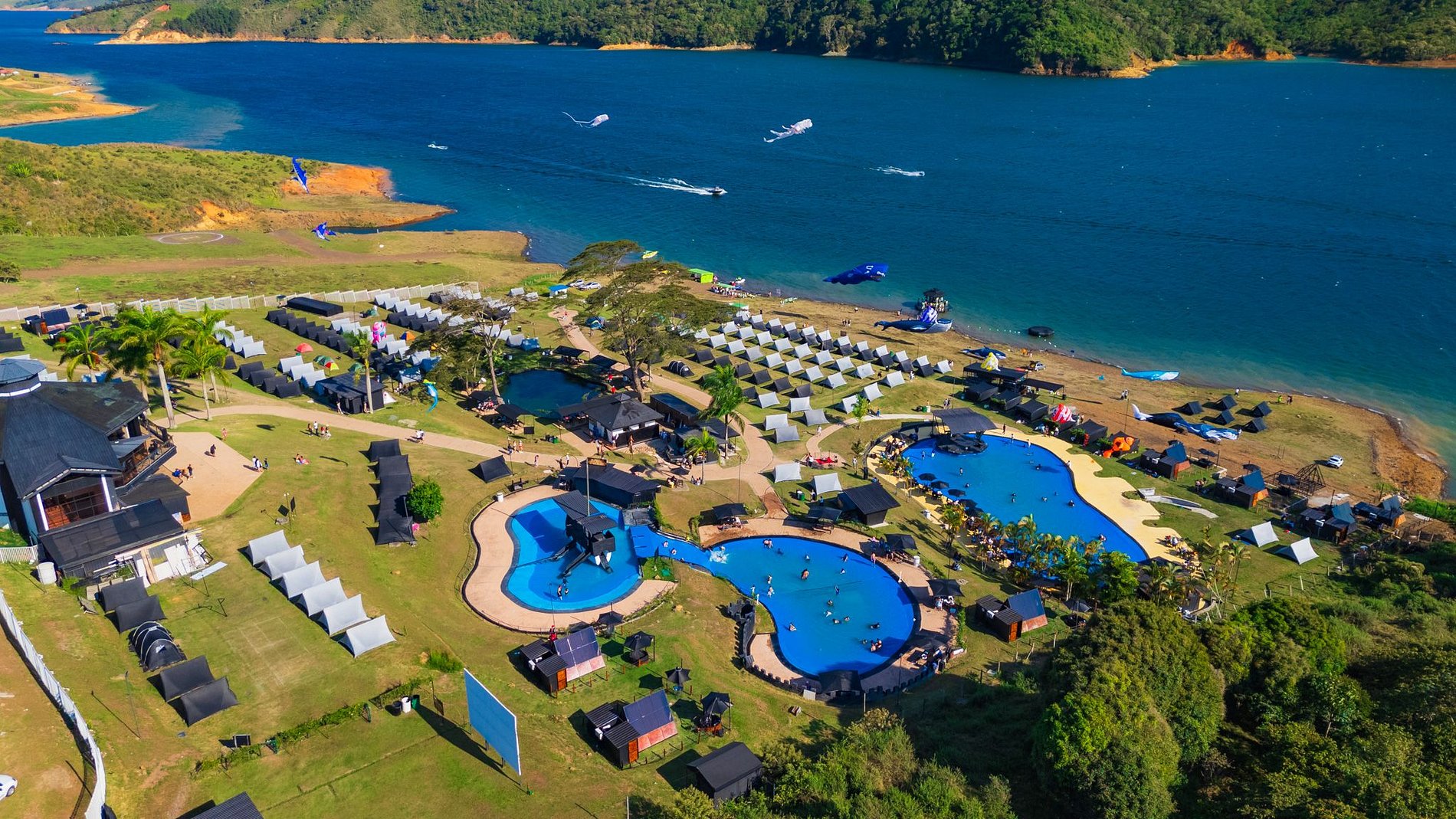 At Mystic Paradise, guests enjoy full access to all our facilities, ensuring a comfortable and unrestricted experience. Relax in our green areas, take a dip in the pools and savor cocktails at the bar . Each glamping also features a private jacuzzi and a fully equipped kitchenette , providing everything needed for a delightful stay. Explore and make the most of every corner of our paradise by Lake Calima!