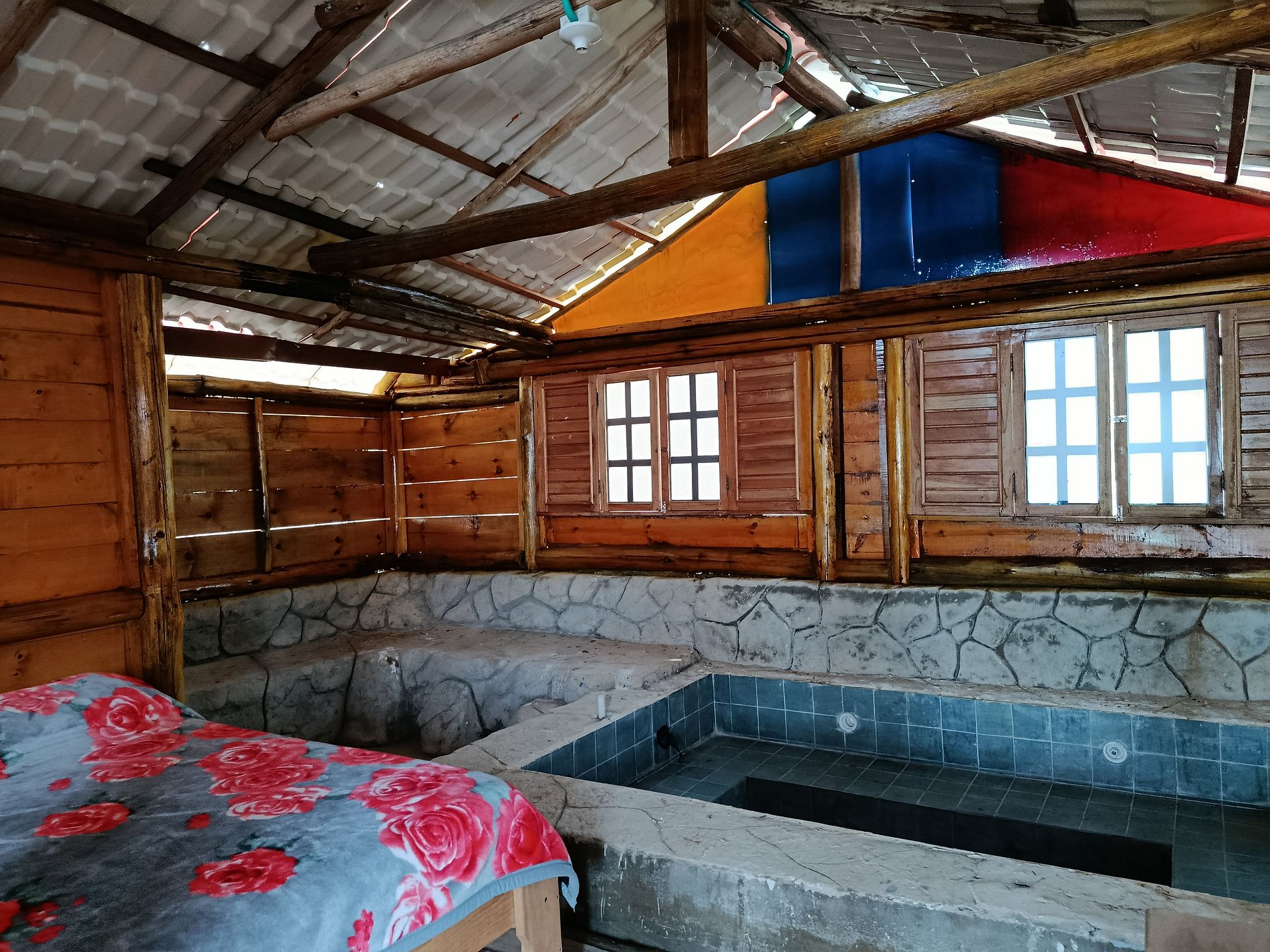 Private cabins with fan, private bathroom, mini bar, hammock, and an incredible view of the Valle del Cauca. Outdoor pool, countryside restaurant, bar, green areas, and nature trails. A cozy space to relax, enjoy nature, and live an authentic experience in Santa Elena. Pet-friendly and free parking.
