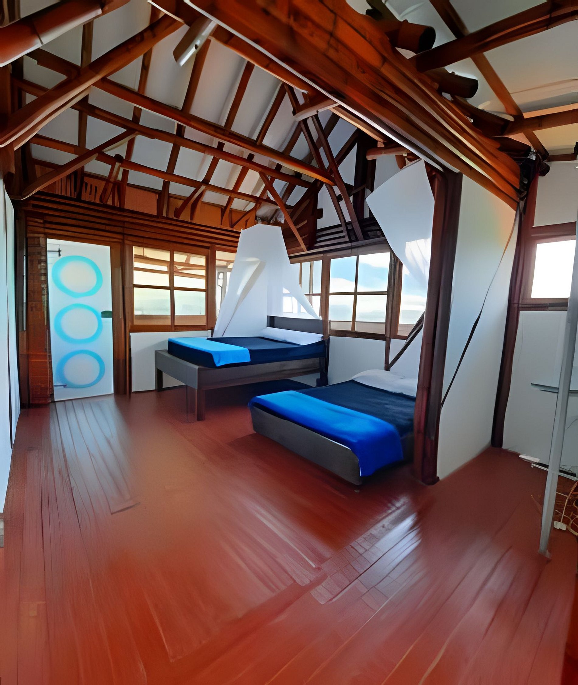 Cada una de nuestras habitaciones está diseñada para proporcionar un espacio privado y acogedor, construidas con materiales locales como guadua y bareque que no solo garantizan un ambiente limpio, sino también auténtico y único. Los huéspedes pueden relajarse y disfrutar de vistas panorámicas al lago desde sus balcones privados, así como descansar en camas cómodas y espaciosamente diseñadas.
