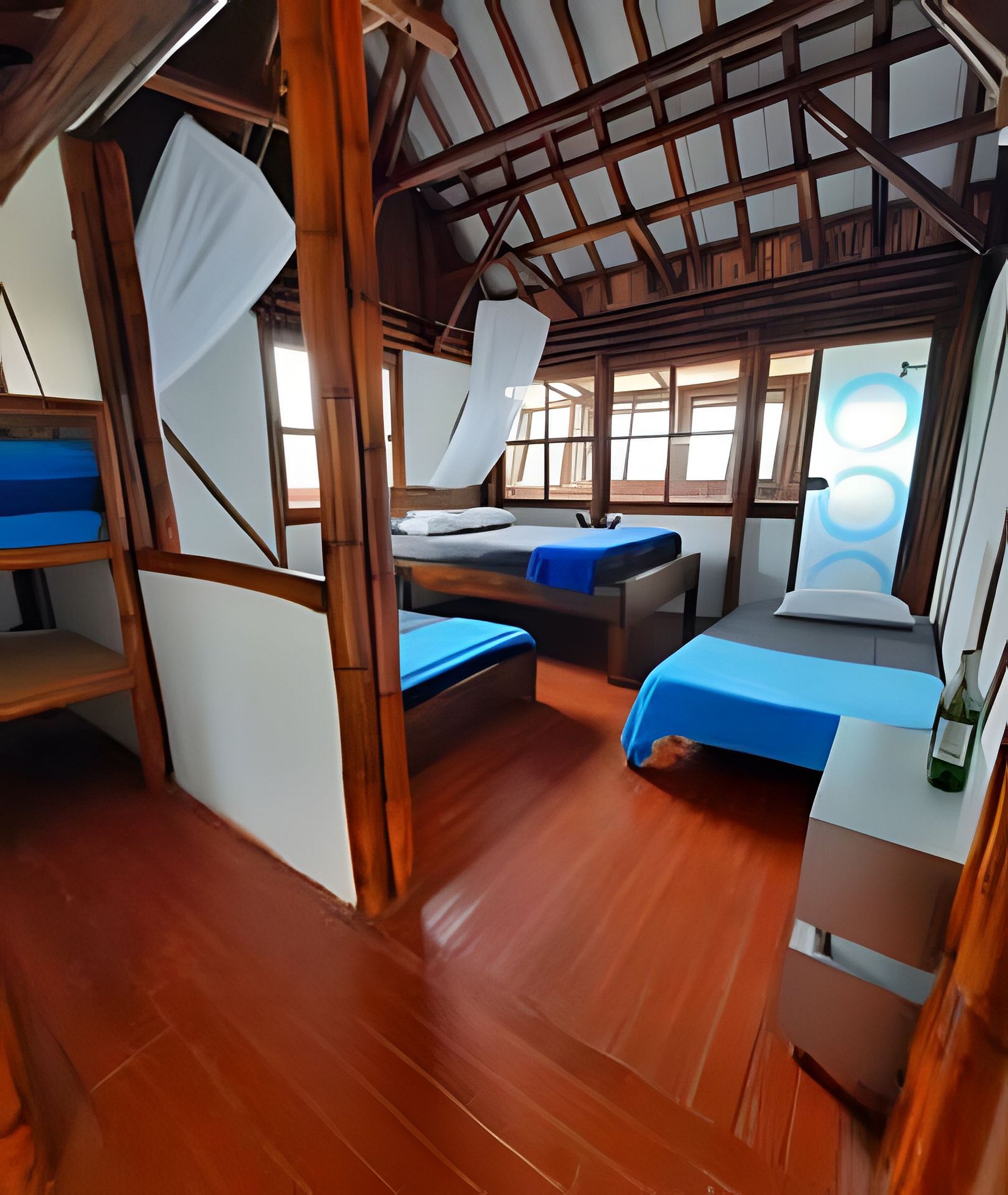 Cada una de nuestras habitaciones está diseñada para proporcionar un espacio privado y acogedor, construidas con materiales locales como guadua y bareque que no solo garantizan un ambiente limpio, sino también auténtico y único. Los huéspedes pueden relajarse y disfrutar de vistas panorámicas al lago desde sus balcones privados, así como descansar en camas cómodas y espaciosamente diseñadas.