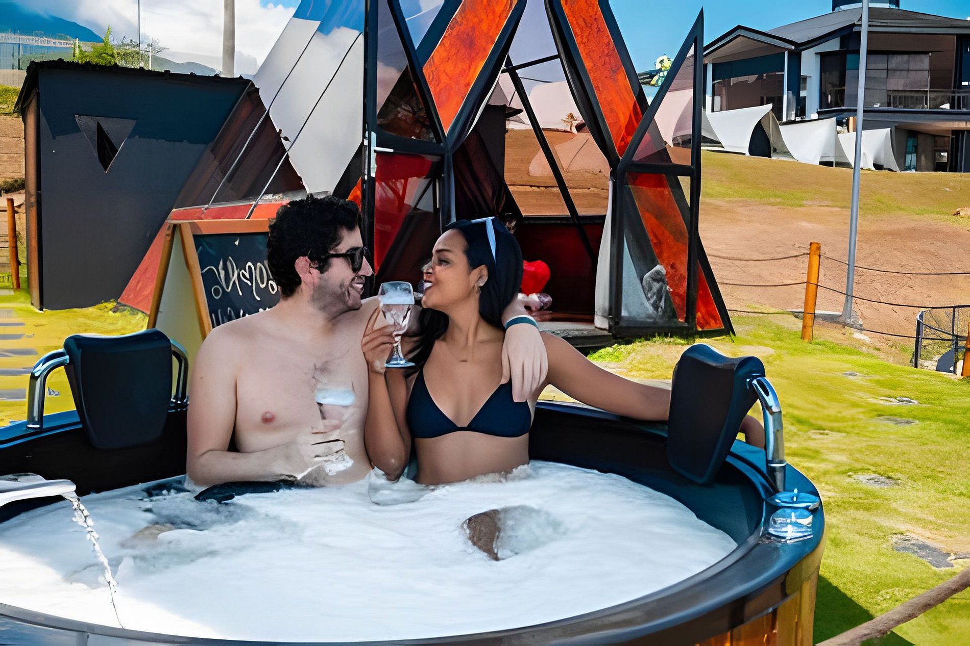 En Mystic Paradise, los huéspedes disfrutan de acceso completo a todas nuestras instalaciones, garantizando una experiencia cómoda y sin restricciones. Puedes relajarte en nuestras zonas verdes, darte un chapuzón en las piscinas , y deleitarte con cócteles en el bar . Además, cada glamping cuenta con un jacuzzi privado y una cocineta equipada. todo lo necesario para una estancia placentera. ¡Explora y aprovecha al máximo cada rincón de nuestro paraíso junto al Lago Calima!