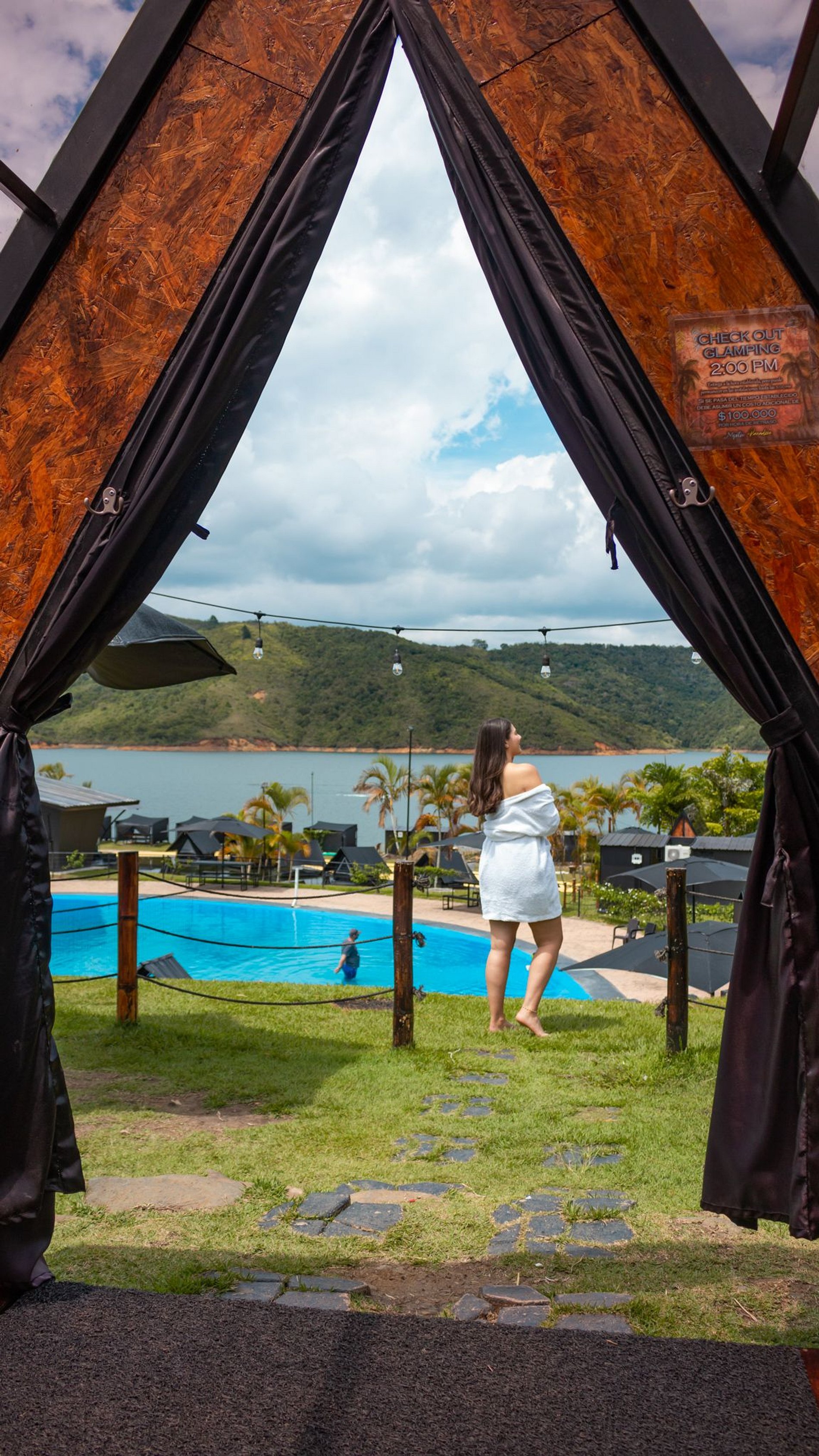 Glamping: Check-in a las 4:00 PM, check-out a las 2:00 PM. Puede permanecer en las instalaciones hasta las 5:00 PM.