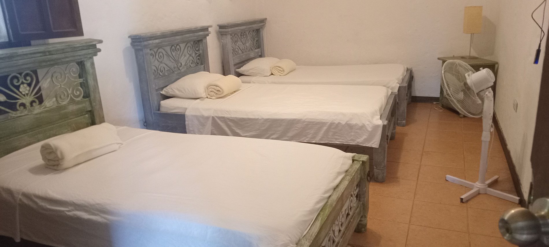 Las habitaciones son amplias, privadas y frescas, equipadas con todo lo necesario para una estadía sin preocupaciones: buena ventilación, agua caliente, Wi-Fi. Cada detalle ha sido pensado para que los huéspedes se sientan cómodos y como en casa desde el primer momento.